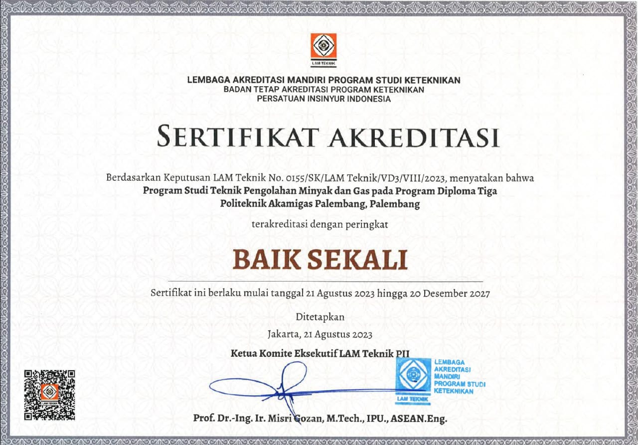 Program studi Teknik Pengolahan Migas sebagai salah satu contoh program studi di lingkungan Politeknik Akamigas Palembang yang didirikan berdasarkan SK Mendiknas No: 224/D/O/2006 merupakan penyelenggaraan pendidikan yang berfungsi untuk mencetak dan mempersiapkan tenaga ahli, terampil dan spesifik bagi kepentingan dunia industri perminyakan dengan pembekalan ilmu pengetahuan yang disipakan untuk menghadapi tantangan perkembangan teknologi. Dalam upaya memenuhi sumber daya manusia yang terampil dan profesional dibidang pengolahan migas. Program studi Teknik Pengolahan Migas menyelenggarakan pendidikan program diploma tida dengan masa studi enam semester.